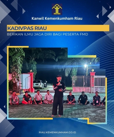 Pekanbaru- Masih dalam rangkaian Kegiatan Peningkatan Fisik, Mental, dan Disiplin (FMD) Tahun 2024 di lingkungan Kantor Wilayah Kementerian Hukum dan HAM Riau, Kepala Kantor Wilayah Kemenkumham Riau Budi Argap Situngkir yang di wakili oleh Kepala Divisi Pemasyarakatan (Kadivpas) Muhammad Ali Syeh Banna berikan Ilmu Jaga Diri bagi peserta Kegiatan FMD Tahun 2024. Rabu (15/05/2024).